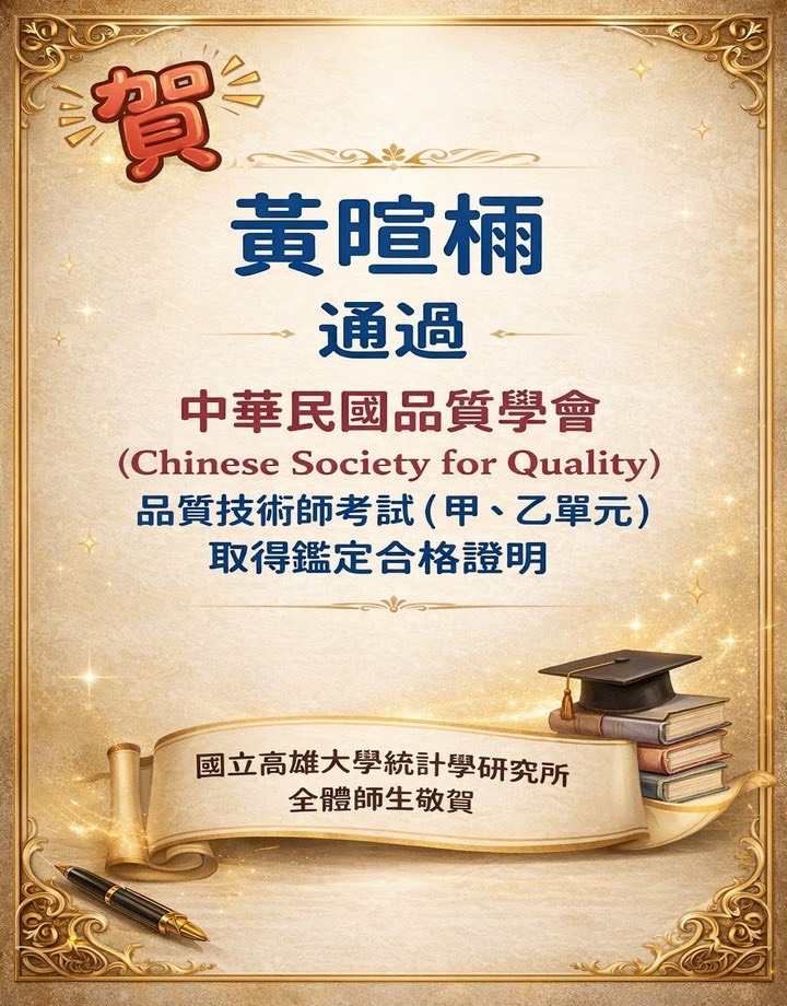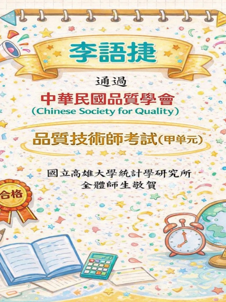 賀! 黃暄𣔯、李語捷同學通過中華民國品質學會品質技術師考試