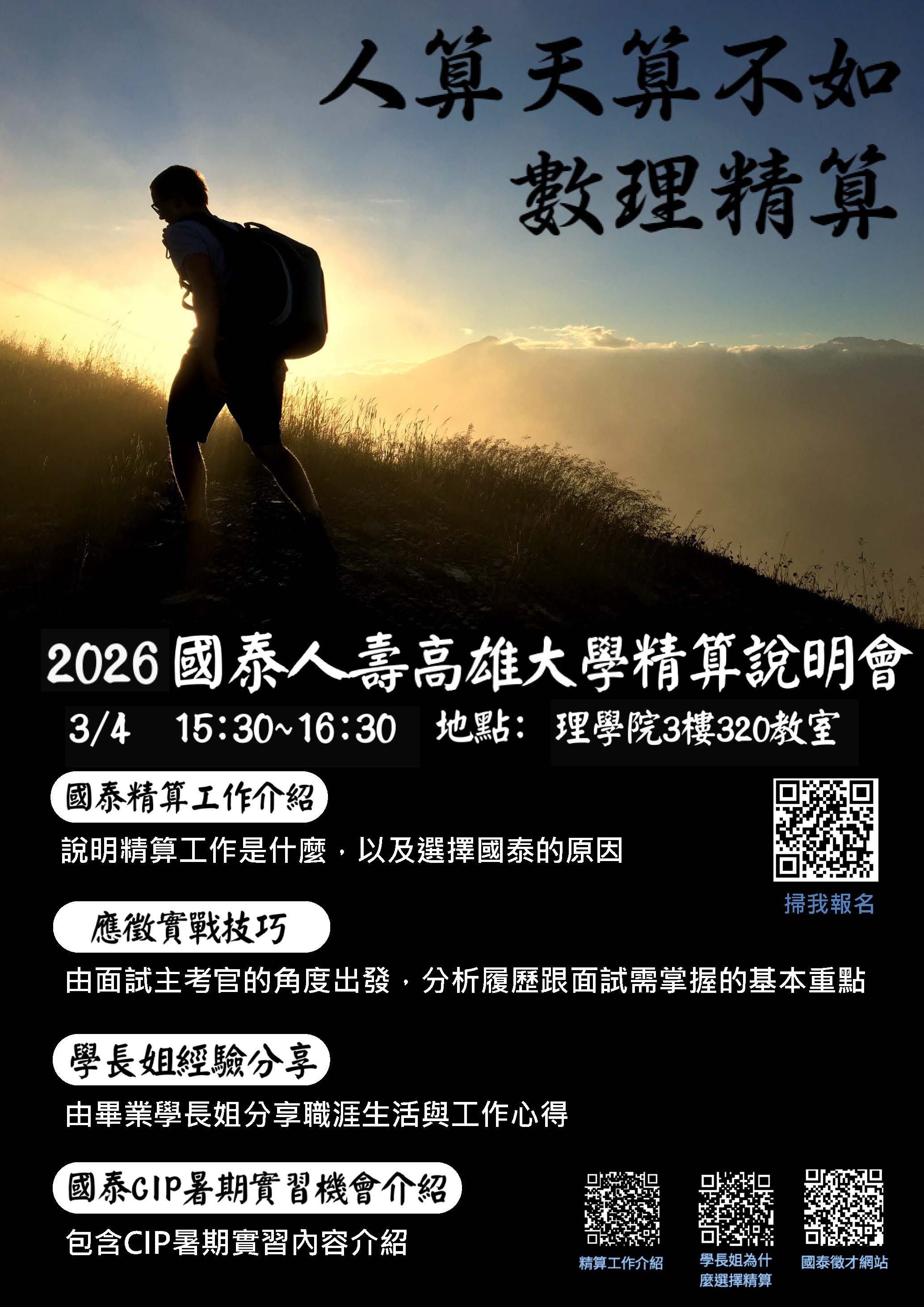 國泰人壽將於115年3月4日 (星期三) 15:30-16:30 前來本所舉辦徵才說明會,