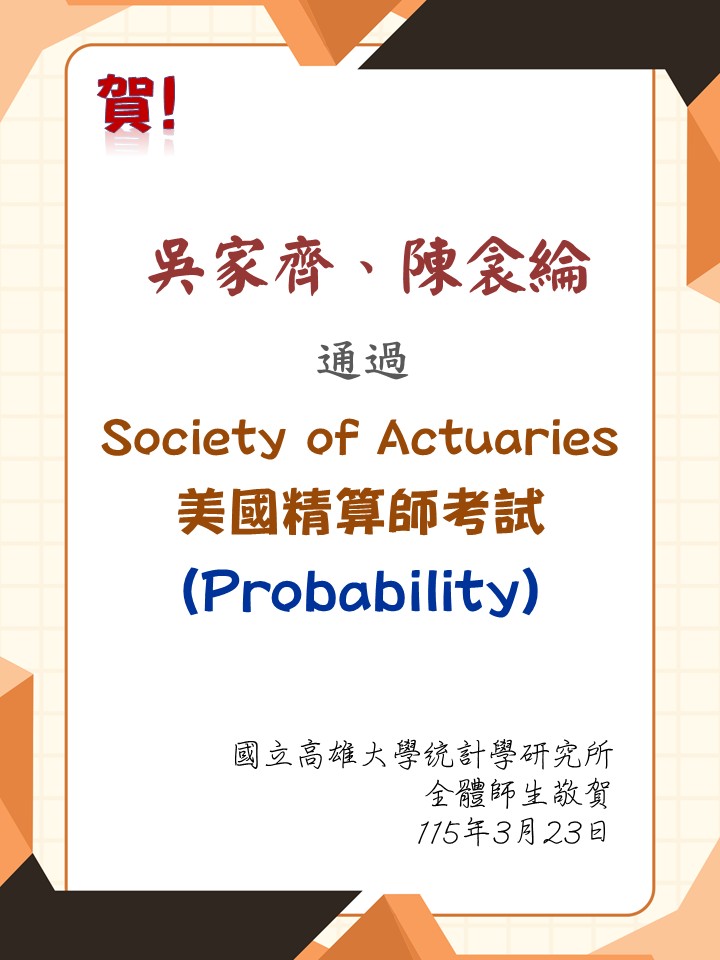 賀! 本所吳家齊、陳衾綸同學通過Society of Actuaries精算師考試